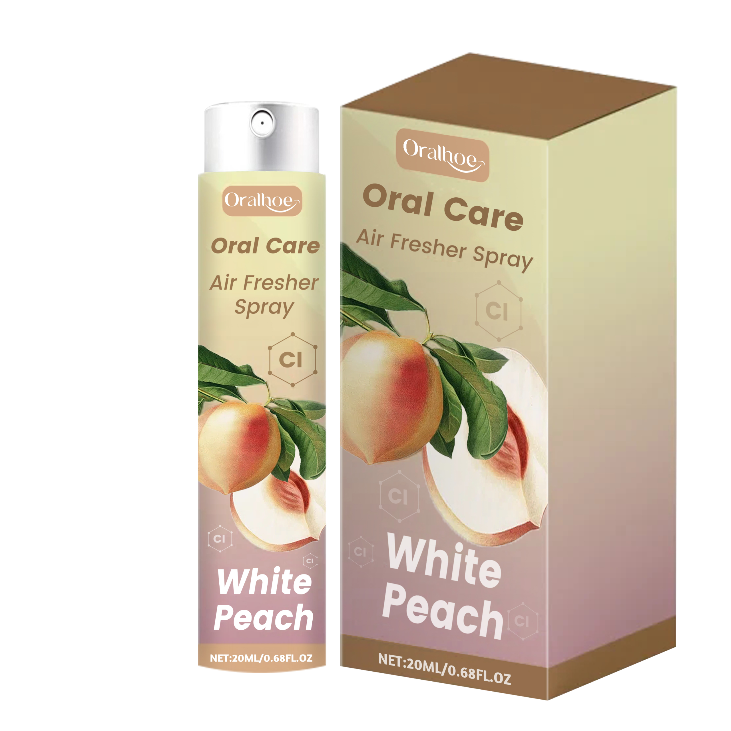 Our White Peach Mouth Refreshing spray contains honey peach fruit extract and sorbitol. It can enhance oral resistance, prevent oral diseases, protect teeth, quickly break down odor molecules, completely eliminate bad breath, and emit a light white peach fragrance. Its use is simple: Point the nozzle at your mouth and gently press the nozzle 2-3 times. After spraying, the mouth will feel fresh and non-sticky, providing a comfortable use experience, and the nozzle design prevents contamination and ensures hygiene and safety every time you use it.