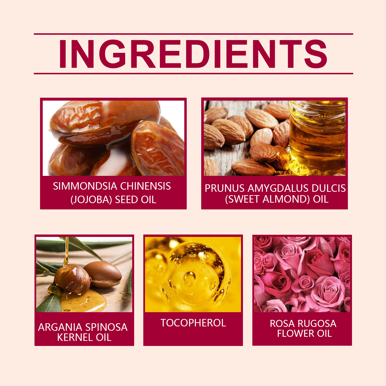 Our rose body oil contains vitamin E, rose oil. It can help the skin resist external damage, repair the skin, and keep the skin healthy and smooth. Its use method is very simple: clean the skin, keep the skin dry, apply an appropriate amount of this product evenly on the body, gently massage to promote absorption. And can be quickly absorbed into the skin, leaving you feeling refreshed and comfortable.
